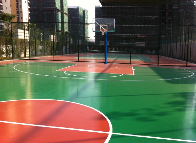 亞克力球場材料分底料、中層料和面料,底層材料和中層材料均為雙組份,由白色有機(jī)丙烯酸乳液(英文亞克力)和綠色無機(jī)活性粉劑組成,既有有機(jī)材料的韌性又有無機(jī)材料的耐侯性。其耐老化性能大大超越了用瀝青做底中層料的傳統(tǒng)做法,兩者按一定比例在現(xiàn)場混合均勻后即可現(xiàn)場施工。底層粉料粒徑稍大,以增加球場厚度和耐磨度。底層粉料粒徑稍小,以增加球場表面細(xì)膩度。面漆是單組份材料,選用耐污性能較高的有機(jī)丙烯酸乳液和助劑、色漿混合而成。