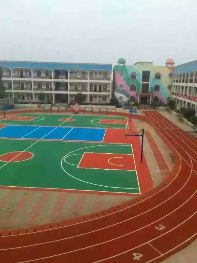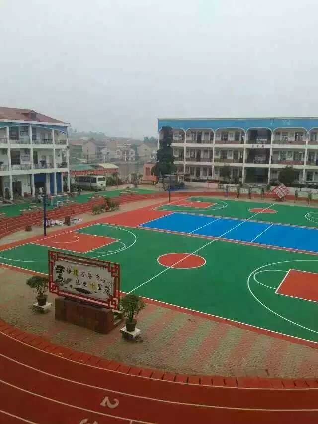 蘄春縣蘄州鎮(zhèn)硅PU籃球場完工,深圳北站丙烯酸材料進(jìn)場