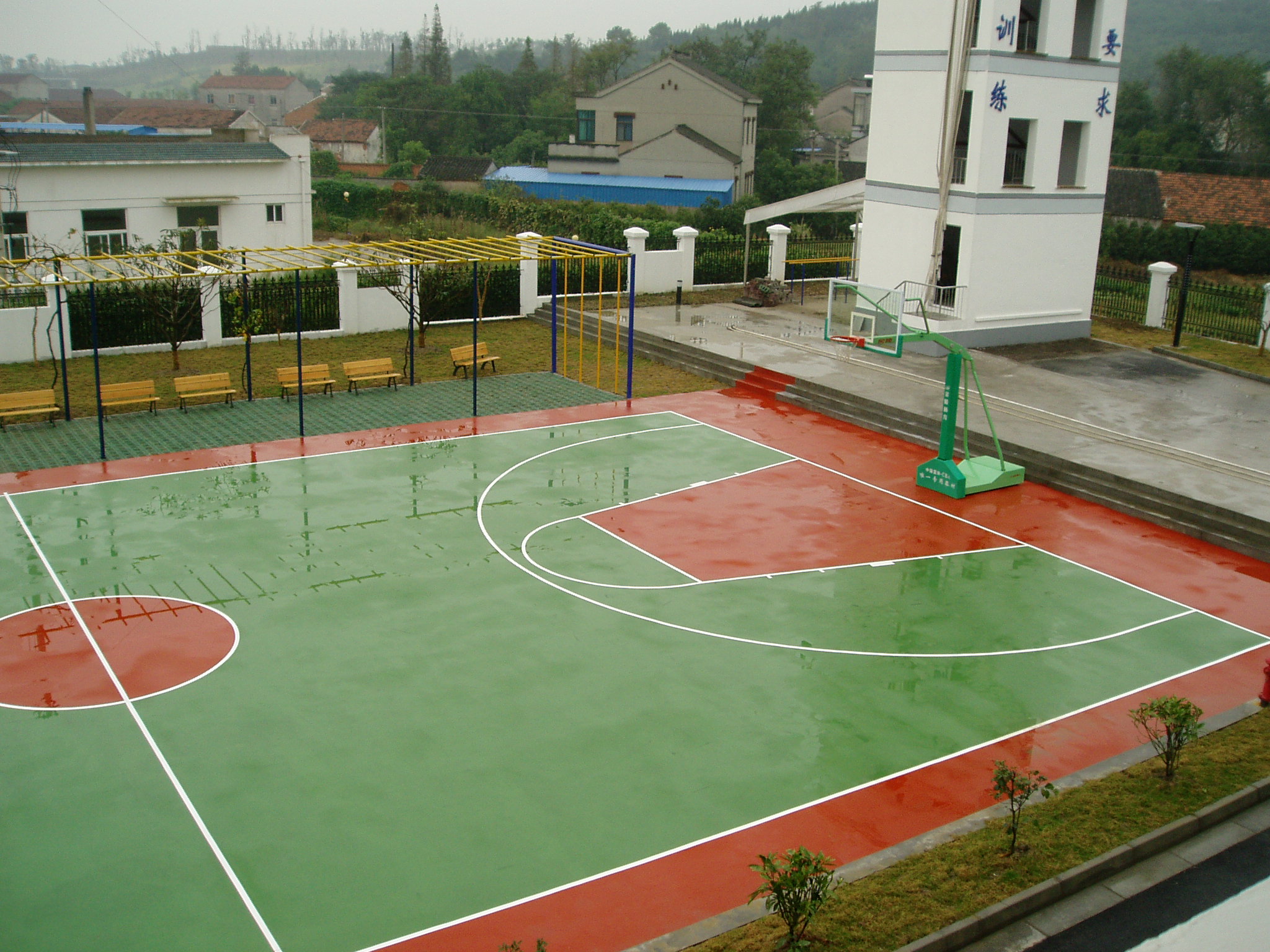 物理性能和耐候性能卓越,耐曬,耐水,耐磨,耐老化,可全天侯使用,適用于室內(nèi)外的運動場地,可移動,也可固定,使用方便,維護簡單,地基不需做防水處理。