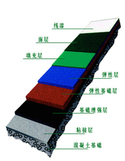 塑材軟墊及丙烯酸涂面系統(tǒng),其厚度約為3-4mm。內(nèi)含百分百無機性纖維顏料,鋪設在已沖洗干凈值良好及排水斜度(1:100至1:150之內(nèi))的水泥或瀝青地面基礎上。
